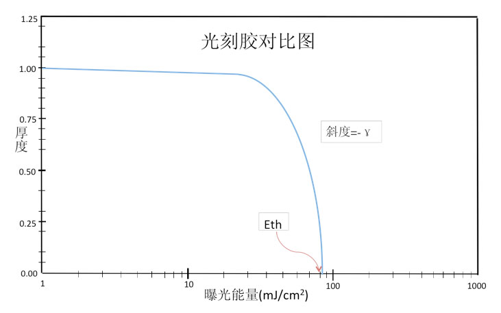 对比值 (gamma γ) 被认为是鉴定光刻胶高曝光区和非曝光区的浴解度差别, 是提高分辨率的关键。