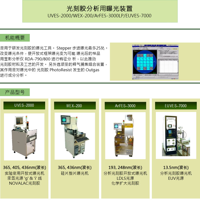 1. 实际上制造电子设备是所需的曝光装置价格很贵,但是有RDA就可以测定光刻胶的各种性能,而且充分发挥曝光装置的功能。