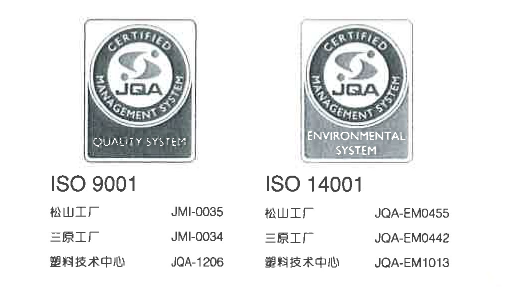 早在1992年7月帝人化成公司的松山,三原工厂的所有质量体系就通过了质量保证体系的国际标准ISO9002的认证,并于1993年3月在日本率先通过了EQNet (现在的EQNet) 认证。接着又在1999年3月通过了包括开发部门在内地的ISO9001的认证。另外,还在1996年6月通过了环境管理体系的国际标准ISO14001的认证。这样,帝人化成已被公认为一家建立了世界通用的质量保证,环境管理体系的公司。